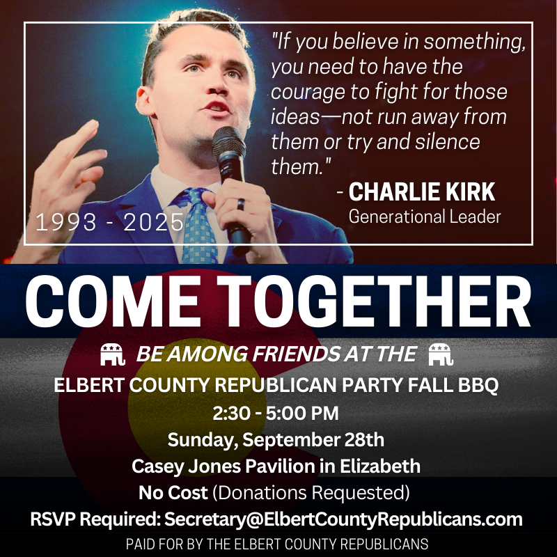 The Elbert County Republican Party wants you to join us for our Annual Fall BBQ!